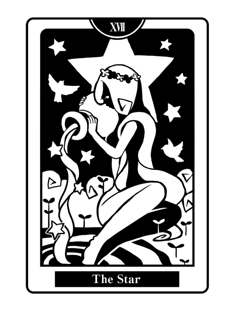 女性は地球の全ての存在に愛と知恵と生命を育むエネルギーを与える星の女神で、背後に輝く星は神の恩恵が人にもたらされたものであるとされています。
