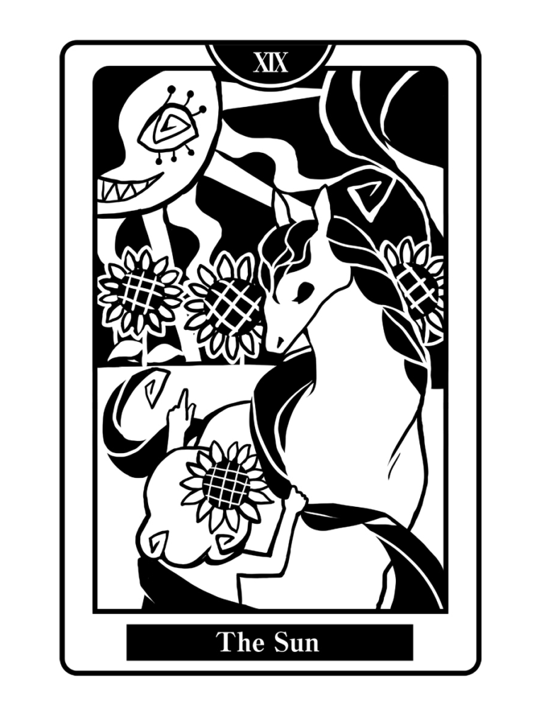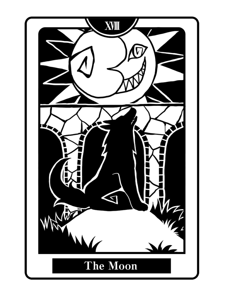 月は移ろいやすい心を意味し、太陽が隠された世界は動物的な本能や恐れに満ちた不安な世界を表しています。